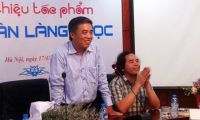 Nhà văn Trần Thanh Cảnh (đứng) trong buổi ra mắt cuốn "Kỳ nhân làng Ngọc"